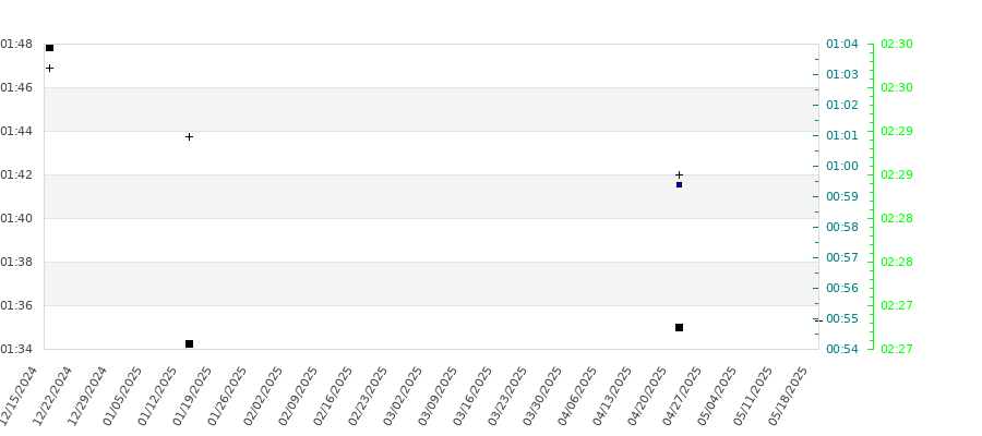 Les historiques des temps par compétition ne sont disponibles que depuis la saison 1997 - 1998.