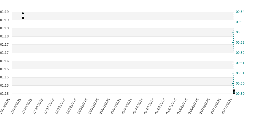 Les historiques des temps par compétition ne sont disponibles que depuis la saison 1997 - 1998.
